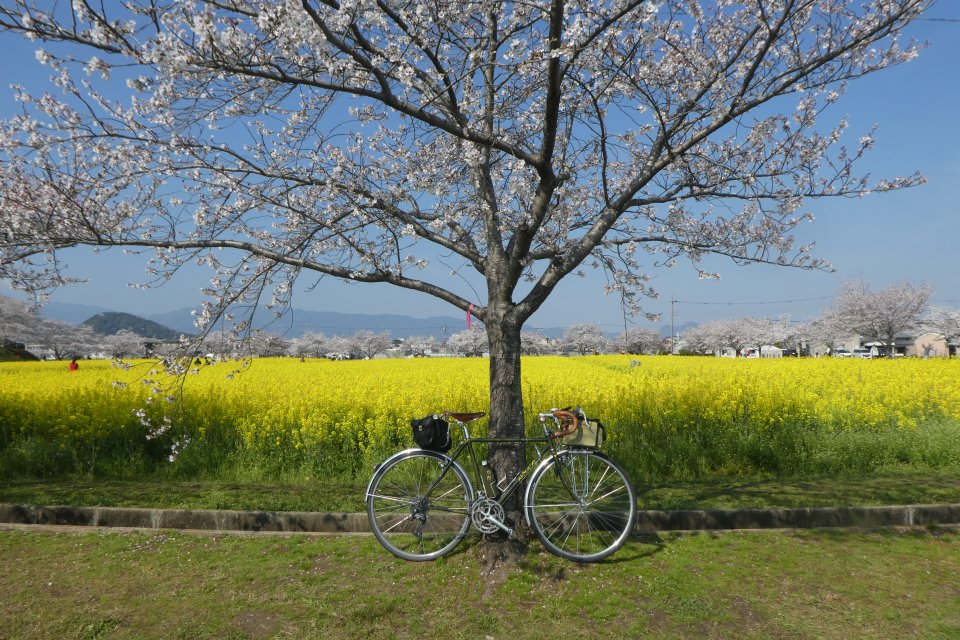 相変わらず通勤と買い出しのみの自転車生活が続いてますが、今朝の陽気に誘われて少しだけ遠回り… 奈良の桜はまだこれから、掖上界隈にて「桜」やなにし「桃」ですね、後ろを走るJR和歌山線がやってくるのを待とうかと思ったのですが、暫し時間が要る様でパス。