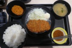 まずはいつもの腹ごしらえで、「松のや」の得朝ロースかつ定食。