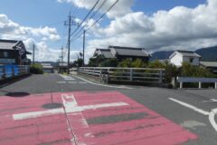 国道24号線に沿った下ッ道を御所方面へ南下します、これを下ッ道と呼ぶのは少し抵抗があるのですがね。御所まではJR和歌山線が並行していて、タイミング良く見通せる処に下りが。安位(あに)川に架かる橋の北詰に南葛城郡忍海(おしみ)村道路元標が健在。
