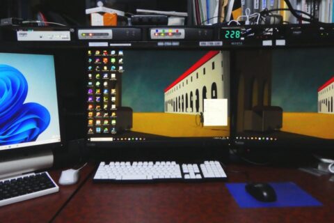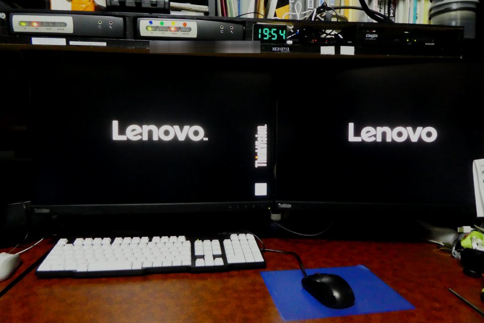 AMAZONでふと目に留まったのが ThinkVision T24d-10 WUXGA 24型の再生品が14.8K也。DVI入力こそないもののHDMIとDisplayPortで今どきの広視野角178°のIPS、必要はないもののUSBハブまで付いていて、スペック的には申し分ありません。早速先週1台入手し再生品としての品質や接続性に問題がない事を確認してもう1台を追加購入し今日届きました。17年前のBeqと違い今どきの狭額フレームですからマルチモニターとしても一挙に快適になりました。そうなるHDMI化にも食指が動くのですが、VGAで繋がっているプライマリとHDMIで繋がっているセカンダリを比べても画質に大差があるとは思えないのですよね。