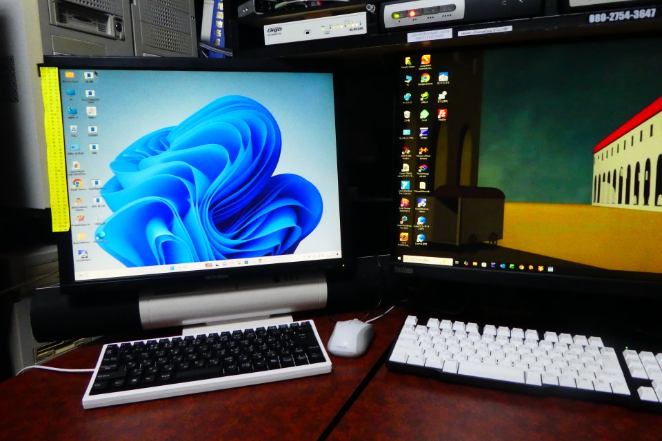 今までセカンダリに使っていたメルカリで送料込み2,500円で見つけた三菱のRDT201L、20吋のUXGA(1600×1200)モニタを、くたびれてきたサーバー用の17吋モニター(SXGA 1280×1024)と入れ替えてデスクトップがすっきりしました。