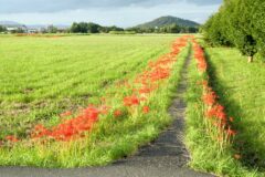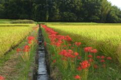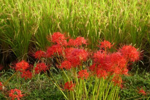 ところで肝心の彼岸花、棚田周辺は皆目ですが麓の方は来週位には見頃になるかと。なお左の写真の彼岸花は造花です。
