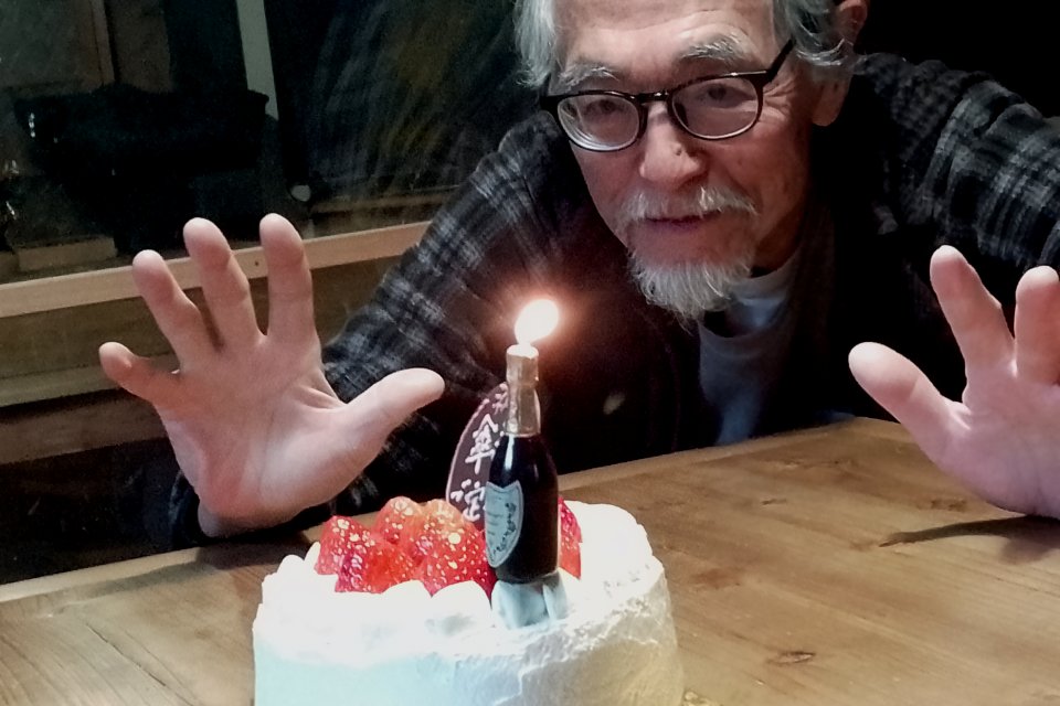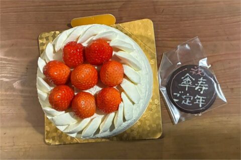翌朝にはお酒も料理もすっかり片付いていたのですが、なんと番頭さんの傘寿とniwa-chanさんおお祝いのケーキが出さず終いだったのに…