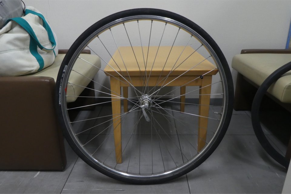 昨夕、出勤前に asuka号の前輪の圧が少し低いかなと確認してみると結構緩い、もしやスローパンク?と思いながら空気を足して出勤すると案の定藤原京を過ぎた処で完全に空気が抜けてしまう、職場まで後1キロにも満たない処なので早足で推して行く事に、夜仮眠時間にでもチューブ交換するか。