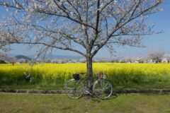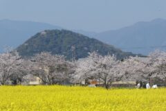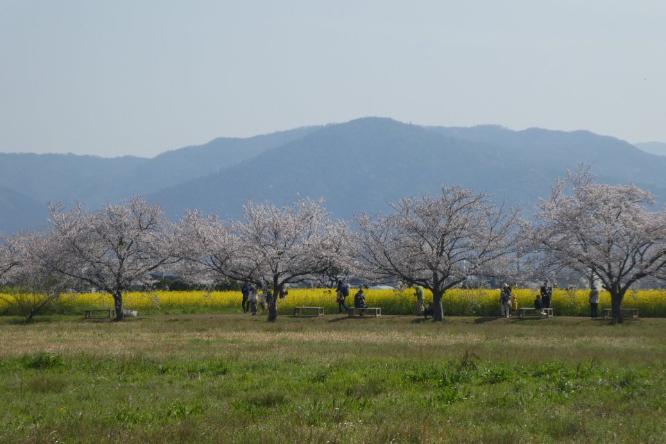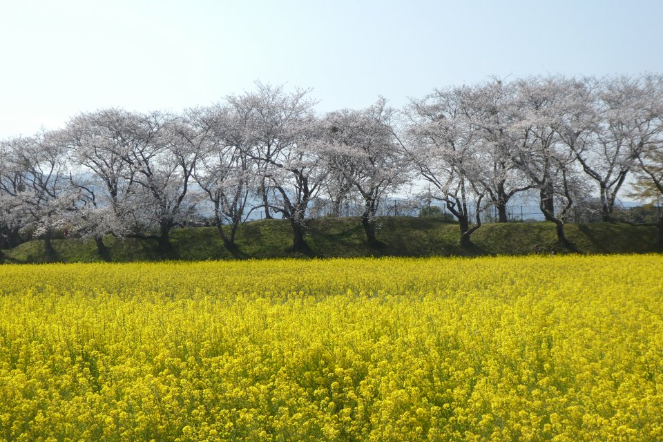 石舞台へ行く前にまずは藤原宮跡醍醐池の菜の花と桜を観ようと。
