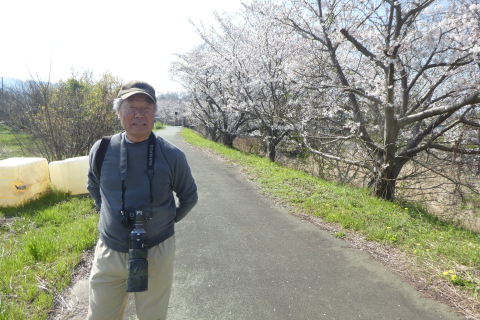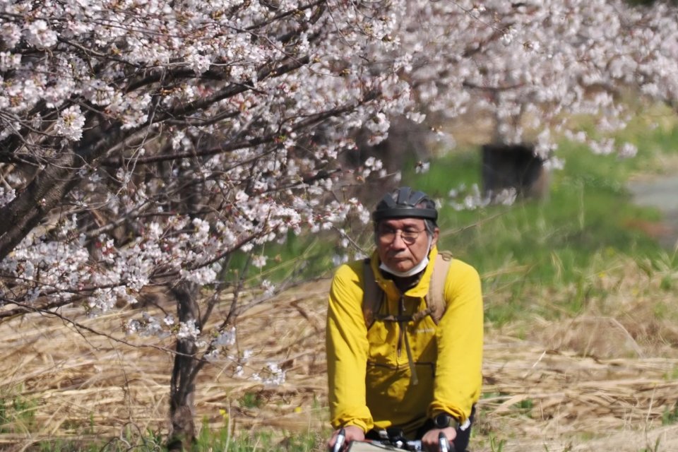 飛鳥川沿いの自転車道にでて明日香村へ向かいます、ここの桜並木もだいぶくたびれてきましたが… 何やら長玉をぶら下げた御仁が、カワセミ狙いのkitanoさんに捕まってしまいました。