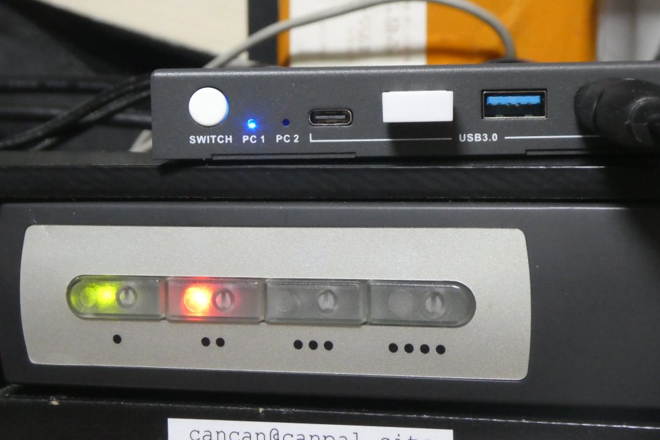 キーボードショートカットは使えませんが本体前面のスイッチとは別に有線リモコンが付いていて、複雑なキーボードショートカットより使い勝手は良いです。手持ちのPS/2マウスやキーボードは変換コネクタを介して利用可能でしたがマウスはワイヤレスに、前面に飛び出さないのがグッド。切替に関しては噂通りVGAよりワンテンポ遅いです、これがHDMI故なのかKVMスイッチの性能なのか。